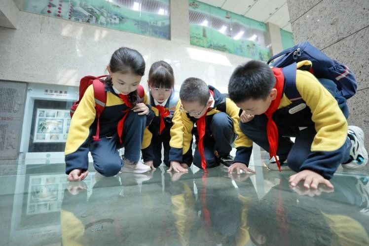 江蘇省南京市小學生在南京圖書館研學,走在六朝遺跡展示區,感受六朝風華與千年文化 王玉秋晨 攝