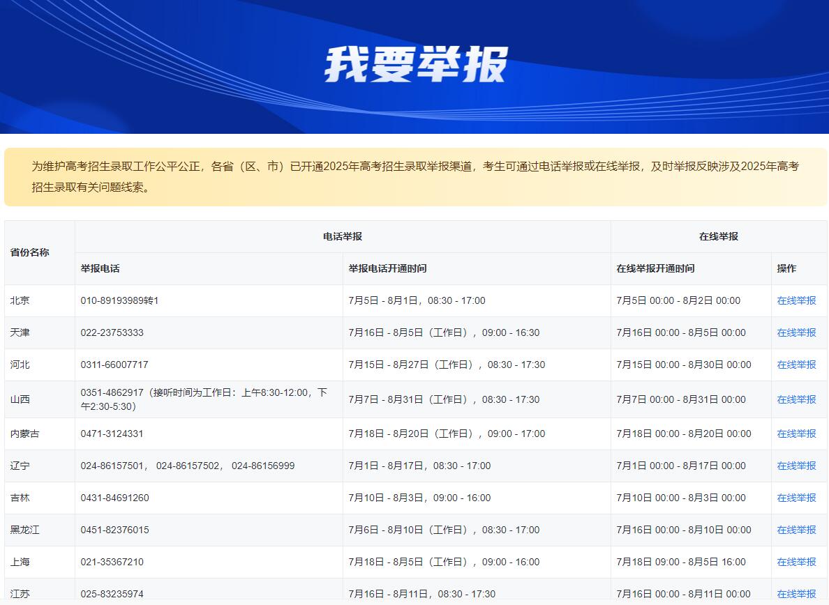 為維護高考招生錄取工作公平公正,各省(區、市)已開通2025年高考招生錄取舉報渠道,考生可及時舉報反映涉及2025年高考招生錄取有關問題線索。