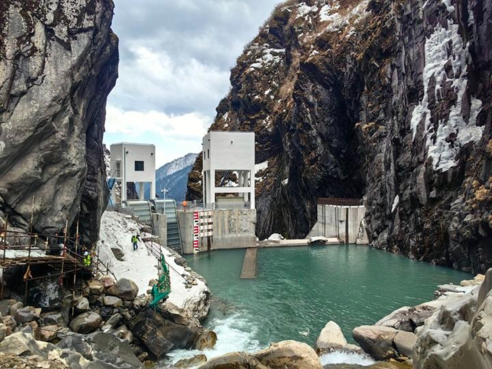這是2025年3月17日在尼泊爾中北部拉蘇瓦縣拍攝的三金考拉水電站大壩。新華社發(中國港灣工程有限責任公司供圖)