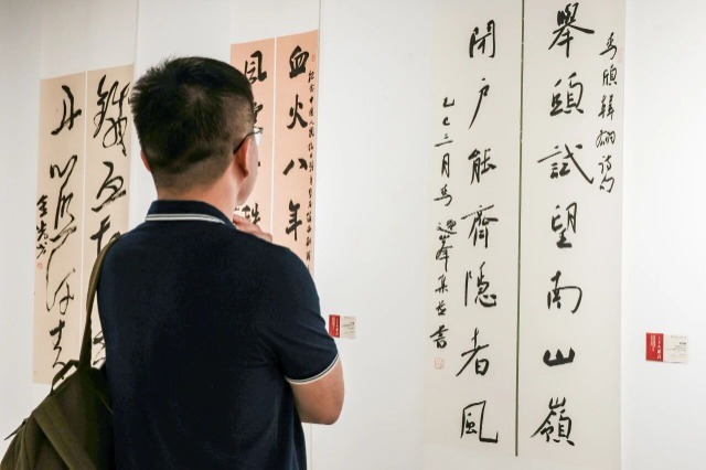“人民的勝利:紀念中國人民抗日戰爭暨世界反法西斯戰爭勝利80周年全國教師書法作品展”開幕。中國教育報-中國教育新聞網記者 單藝偉 攝