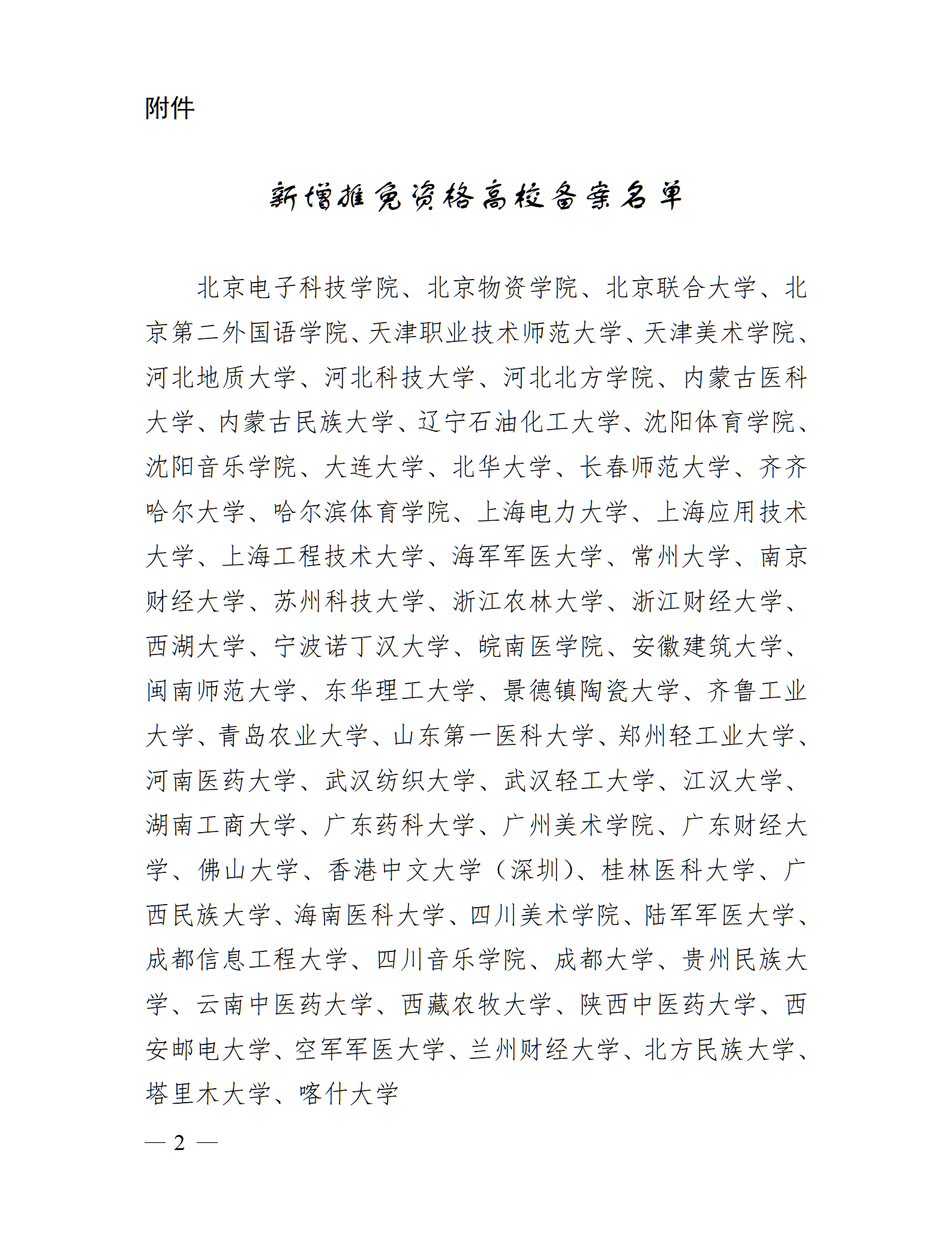 教育部辦公廳關(guān)于對(duì)新增推免資格高校予以備案的通知