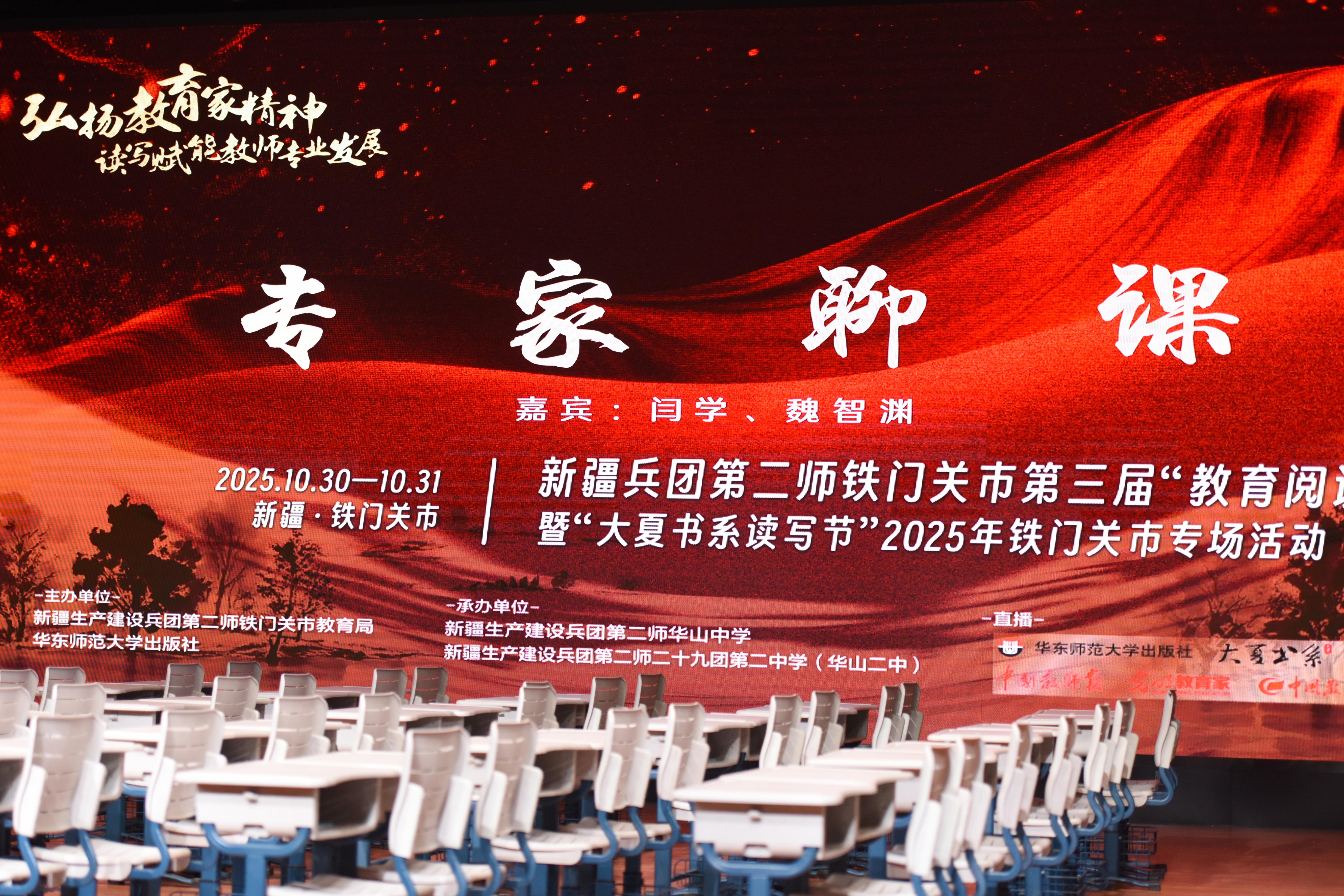 中國教育新聞網訊(通訊員 祝漫漫 記者 戚悅)10月30日至31日,由新疆生產建設兵團第二師鐵門關市教育局、華東師范大學出版社聯合主辦的第三屆“教育閱讀節”暨“大夏書系讀寫節”鐵門關市專場活動,在新疆生產建設兵團第二師二十九團第二中學(華山二中)成功舉辦。