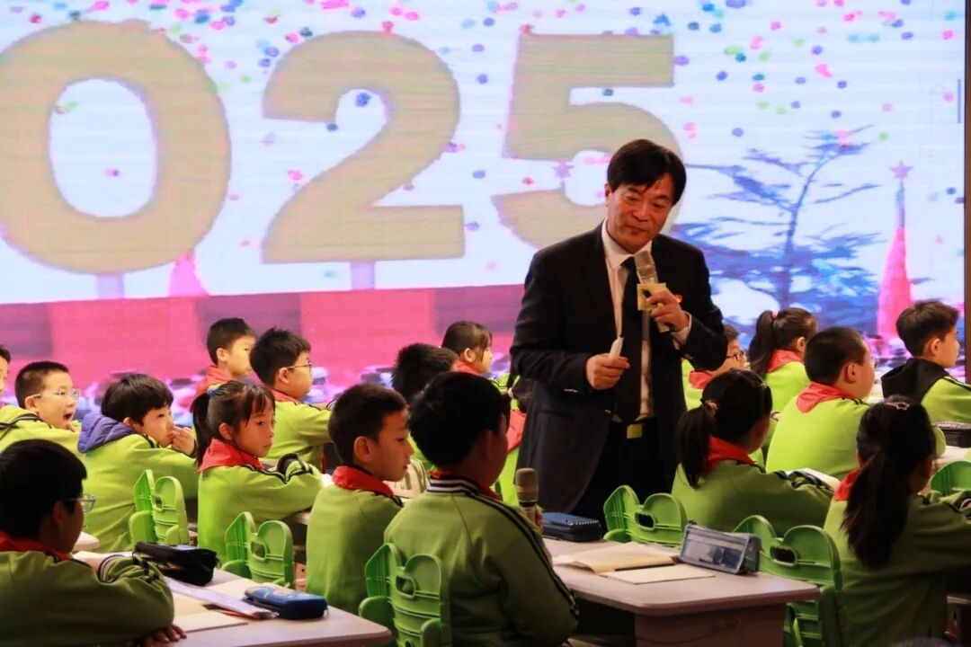 “看完九三閱兵的短視頻后你最好奇什么?”“抗戰勝利80周年為什么要紀念?”“中國人民抗日戰爭打了多少年?”開幕式上,一節由特級教師、正高級教師華應龍帶來的《艱苦卓絕的14年》示范課引得學生們積極互動。課程以十四年抗戰的艱難歲月為情感主線,引導學生感受戰爭時期的“艱苦卓絕”,同時,學生綜合運用“年、月、日”和“米尺”等數學知識實際測算歷史時長,在知識應用中感悟民族苦難,樹立振興中華之志。