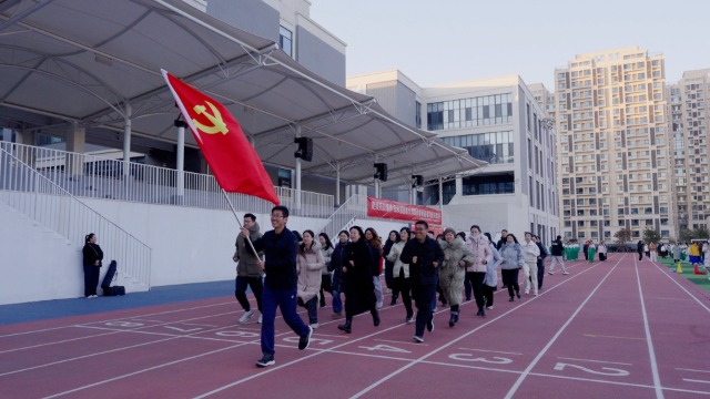 學(xué)校黨總支書記劉晶將黨旗、團(tuán)旗、少先隊(duì)旗、校旗鄭重授予師生代表,并宣布活動(dòng)正式開始。旗幟接力跑環(huán)節(jié),32名校領(lǐng)導(dǎo)與黨員代表率先擎起黨旗完成首棒,團(tuán)員代表、少先隊(duì)員代表及小學(xué)部師生依次接過團(tuán)旗、隊(duì)旗和校旗,完成兩圈接力。接力結(jié)束后,各班在班旗帶領(lǐng)下,沿預(yù)定路線展開主題長跑。