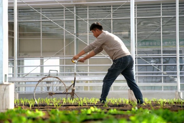 在甘肅省張掖市登海種業(yè)有限公司人工氣候溫室,工作人員開展育種試驗(2025年11月12日攝)。新華社記者 王朋 攝