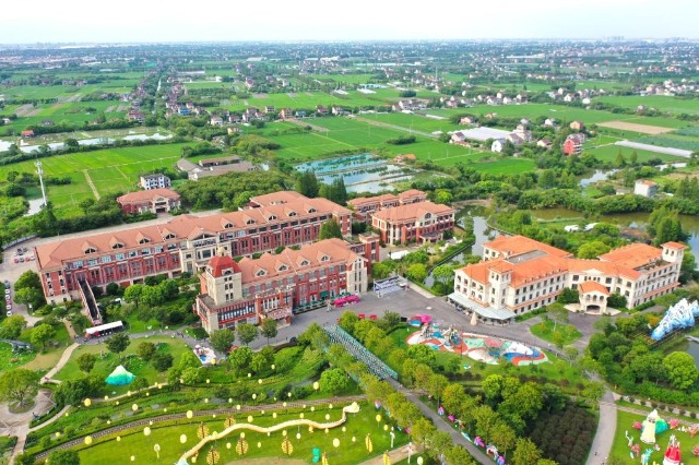 在浙江省嘉興市嘉善縣繆家村拍攝的歌斐頌巧克力小鎮(zhèn)(2025年8月7日攝,無人機照片)。新華社記者 毛竹 攝