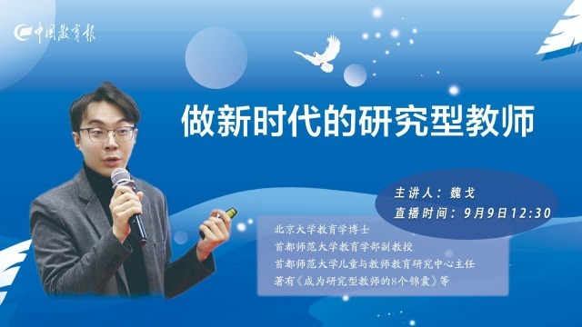 9月9日,中午12:30,中國教育報特邀首都師范大學魏戈老師作客直播間。一起聊聊做科研、寫論文的那些事兒。大家一起成為研究型教師。