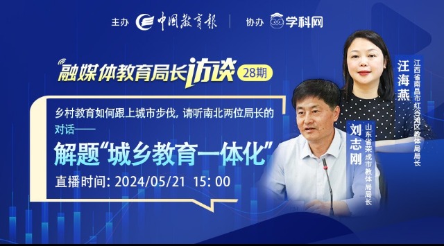 中國教育新聞網(wǎng)訊(記者 焦小新)今年的政府工作報(bào)告提出,要“加快建設(shè)高質(zhì)量教育體系,推進(jìn)義務(wù)教育優(yōu)質(zhì)均衡發(fā)展和城鄉(xiāng)一體化”。具體到區(qū)域?qū)用妫绾我虻刂埔说赝苿咏逃哔|(zhì)量發(fā)展、建設(shè)教育強(qiáng)國、辦好人民滿意的教育?本期,《中國教育報(bào)》融媒體教育局長訪談欄目邀請到山東省榮成市教育和體育局局長劉志剛先生和江西省南昌市紅谷灘區(qū)教體局局長汪海燕女士做客直播間。兩位局長將開啟一場跨越南北的教育對話,敬請關(guān)注!