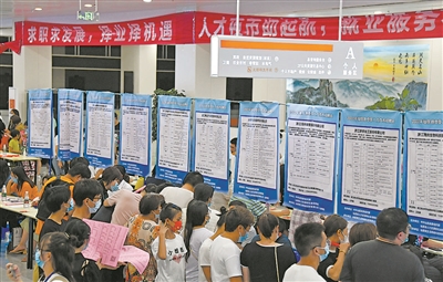 近日,求職者在浙江省臺(tái)州市仙居縣“人才夜市”尋找崗位。為進(jìn)一步促進(jìn)高校畢業(yè)生等群體就業(yè),仙居縣2022年第二場(chǎng)“人才夜市”招聘會(huì)在縣行政服務(wù)中心舉辦,當(dāng)?shù)?3家企業(yè)提供2180多個(gè)就業(yè)崗位,吸引眾多求職者前來咨詢應(yīng)聘。