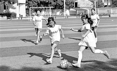 近日,浙江省臺(tái)州市仙居縣田市鎮(zhèn)中心小學(xué)學(xué)生正在進(jìn)行足球訓(xùn)練。暑假期間,該校開辦足球夏訓(xùn)營(yíng),學(xué)生們?cè)诮叹毜膸ьI(lǐng)下學(xué)習(xí)足球知識(shí)、進(jìn)行技能訓(xùn)練,在綠茵場(chǎng)上樂(lè)享假日時(shí)光。 王華斌 攝