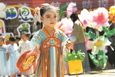 近日,在江西省德興市銅礦中區(qū)幼兒園,孩子們身穿古裝開心地賞花燈、猜燈謎。參加此次展示活動(dòng)的花燈全部都是該園孩子們在老師和家長的幫助下,利用閑置物品制作而成,各種造型別致的環(huán)保花燈,讓人看了賞心悅目。卓忠偉 攝