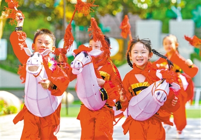 “下箬馬燈”是發源于浙江省湖州市長興縣的民間舞蹈,距今已有1450多年歷史,屬于非物質文化遺產。日前,長興縣開發區實驗幼兒園組織孩子們體驗非遺馬燈,傳承中華優秀傳統文化。譚云俸 攝