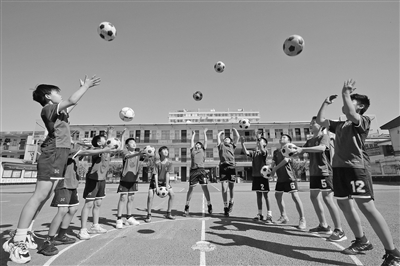 圖為河北省邯鄲市永年區(qū)實驗小學的學生在校園內(nèi)進行足球游戲。