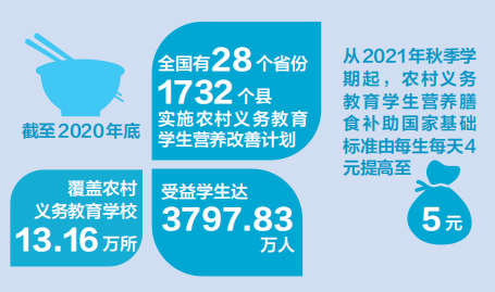 幾年來,我校學生就餐時,飯自己盛,吃多少打多少,杜絕浪費。菜由食堂工人打,不夠吃的可以向食堂工人要求再添點,直到吃飽為止。2021年9月,營養改善計劃膳食補助標準由原來每生4元提高到每生5元,營養餐的菜品種類不僅得到充實,味道也更好了,學生的飯量也增大了。實施營養改善計劃后,老師不但沒有增加工作量,還提高了工作效率。因為學生生活得到了保障,就餐秩序好了,校園和宿舍的衛生狀況得到了改善,學生營養不良率持續下降,教師們心情也好了。