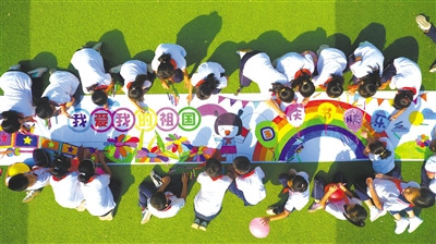 9月27日,山東省聊城市茌平區楊官屯鄉新時代文明實踐志愿者走進楊官屯鄉中心小學,開展了主題為“強國有我 祖國萬歲”系列社會實踐活動。志愿者通過組織學生共繪國慶文化長卷、講述紅色故事、童聲頌祖國等系列活動,為孩子們種下愛國報國的種子。圖為學生在共繪國慶文化長卷。 趙玉國 攝
