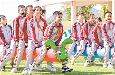 10月10日,浙江省湖州市德清縣舞陽街道上柏小學(xué)學(xué)生在做趣味游戲。當(dāng)日,該校開展“營造良好環(huán)境,共助心理健康”主題教育,通過心理沙盤、音樂放松等方式,引領(lǐng)學(xué)生了解心理健康知識,培養(yǎng)學(xué)生積極向上的心態(tài)。王樹成 攝