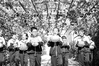 10月10日,河北省唐山市豐潤區(qū)新軍屯鎮(zhèn)溪歌莊小學(xué)學(xué)生在校園搬運收獲的南瓜。金秋時節(jié),該校在校園里種植的農(nóng)作物迎來豐收,孩子們在忙碌中感受勞動的艱辛和豐收的快樂。朱大勇 攝