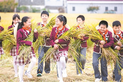 10月27日,江蘇省海安經(jīng)濟(jì)開發(fā)區(qū)實(shí)驗(yàn)小學(xué)的學(xué)生們?cè)谛M鈩趧?dòng)實(shí)踐基地體驗(yàn)手工收割水稻。該校學(xué)生在校外勞動(dòng)實(shí)踐基地開展田間課堂活動(dòng),通過手工收割稻谷等體驗(yàn)傳統(tǒng)農(nóng)耕文化、感受勞動(dòng)樂趣,知曉每一粒糧食的來之不易。翟慧勇 攝