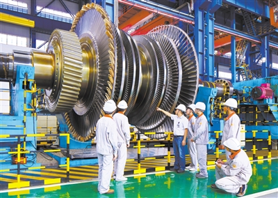 職業教育強化產教融合,源源不斷培養產業生力軍。2019年11月,四川工程職業技術學院學生在東方汽輪機有限公司參加實訓,照片定格了學生在車間學習工作的場景。