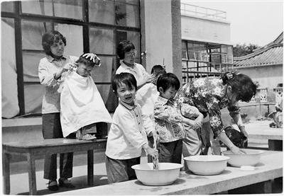 百年前的星蔭幼稚園發展成今天的寧波市第一幼兒園。幼兒園幾經變革,園長、老師們不斷更替,但行為課程的精神一直得到了延續,并在改革開放的新時代不斷得到強化和創新。老師們深入學習和領會張雪門的教育思想,結合國家有關法規和政策,借鑒現代先進的教育理論,聯系幼兒園的現實,在學習中思考,在探索中提升,在繼承中創新。老師們有鮮明的兒童觀,真正把兒童當作獨立的、具有自身價值的、有能力的和主動的學習者。他們為兒童提供了適宜的環境和條件,讓兒童有機會親近自然、體驗社會、感受文化,在與周圍環境相互作用的過程中充實經驗。