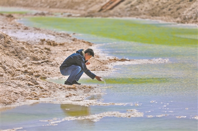 青藏高原,畢業(yè)于西安建筑科技大學(xué)的黃丹曦博士,和往常一樣穿過大半個鹽湖廠區(qū),走向目標(biāo)取樣點(diǎn)。