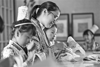 近日,貴州省黔西市新仁苗族鄉折溪小學的學生在練習刺繡、蠟畫、蠟染。近年來,折溪小學積極推動“指尖技藝”刺繡進課堂,選任學校精通刺繡、蠟畫、蠟染的教師指導學生學習,讓苗族山區的孩子們“零距離”接觸非遺技藝,弘揚和傳承民族優秀傳統文化。