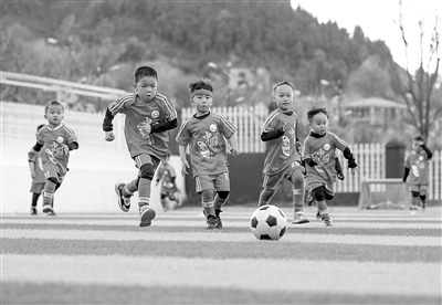 日前,在貴州省銅仁市玉屏侗族自治縣皂角坪中心幼兒園,小朋友在練習足球。近年來,玉屏侗族自治縣十分重視幼兒的體育運動,為幼兒園配備足球老師教授幼兒足球知識和技藝,讓孩子們感受足球運動的魅力。胡攀學 攝
