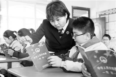近日,安徽省合肥市五一小學學生在檢察官帶領下學習憲法知識。廬陽區人民檢察院檢察官走進該校,通過普法小課堂、現場互動等形式,帶領學生學習法律法規知識,推進憲法學習宣傳教育。韋豹 攝