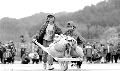 圖為湖南省懷化市通道侗族自治縣萬佛山鎮(zhèn)綜合實踐研學(xué)基地現(xiàn)場,通道禮雅小學(xué)學(xué)生在開展趣味推車比賽。近年來,當(dāng)?shù)胤e極弘揚和傳承民族優(yōu)秀傳統(tǒng)文化,多位非遺傳承人成為特聘教師扎根研學(xué)基地,為中小學(xué)生研學(xué)提供服務(wù)。粟勇主 攝