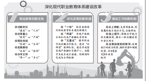 如今,《意見》重點關(guān)注“如何看職業(yè)教育”“如何干職業(yè)教育”和“誰來干職業(yè)教育”,直擊改革實踐中的難點痛點問題,提出了一系列新理念、新觀點、新判斷,極具理論與實踐價值。