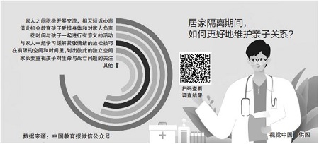 感染病毒康復(fù)后,如何更好地維護(hù)親子關(guān)系?調(diào)查顯示,家長們比較認(rèn)同“家人之間積極開展交流,相互傾訴心聲”“借此機(jī)會教育孩子愛惜身體并對家人負(fù)責(zé)”“花時(shí)間與孩子一起進(jìn)行有意義的活動”“劃出彼此的獨(dú)立空間”等。