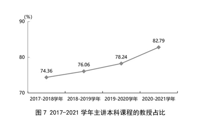 越來越多的大學教授扎根教學一線。數據顯示,2020—2021學年,一流大學建設高校主講本科課程教授占教授總數的比例為82.79%。其中,浙江大學、四川大學、大連理工大學等高校主講本科課程的教授占教授總數的比例超過90%。