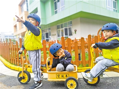 近年來(lái),江蘇省鹽城市鹽都區(qū)實(shí)驗(yàn)幼兒園大力倡導(dǎo)幼兒自主游戲、自主活動(dòng)。近日,在“騎行區(qū)”自主游戲的幼兒,被路邊大樹(shù)上的一只小鳥(niǎo)吸引了,停車(chē)駐足,觀(guān)察討論小鳥(niǎo)那對(duì)白色的翅膀。張艷 攝