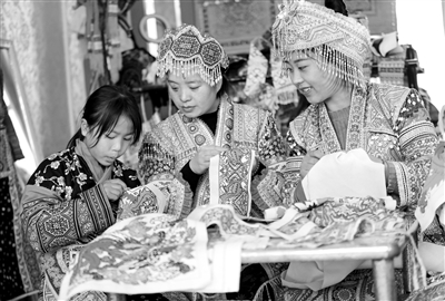1月6日,貴州省黔西市紅林彝族苗族鄉(xiāng)漁塘村“刺繡作坊”里的老師在教孩子學(xué)習(xí)刺繡。寒假期間,該村“刺繡作坊”里的家長把孩子帶到“刺繡作坊”,指導(dǎo)孩子學(xué)習(xí)傳統(tǒng)文化,把傳統(tǒng)技藝傳授給下一代。