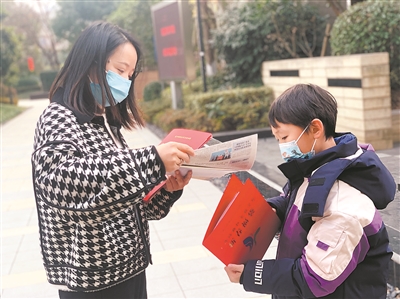 “原本以為受疫情影響,要到下學期才能拿到孩子的成長報告單,沒想到老師們會親自送過來。福袋里不僅有孩子的成長報告單,還有學校2022年十件大事評選專刊和校報,更難得的是還有老師親筆書寫的新春對聯,非常暖心。”學生王梓衡的媽媽拿到福袋后直呼驚喜。