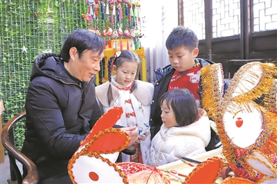 近日,在江蘇省東臺市,孩子們在非遺花燈傳承人趙柏生的指導下一起制作兔子花燈,體驗傳統民俗文化,迎接元宵佳節。練益華 攝