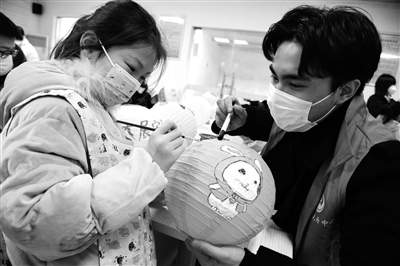 近日,江蘇省鎮江市潤州區金山街道紅光太古山社區聯合江蘇大學志愿者開展“手繪燈籠迎元宵”活動,指導小朋友在五彩燈籠上描繪兔年元宵節主題畫,感受傳統民俗文化的魅力。石玉成 攝