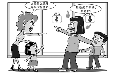 不久前,在黑龍江哈爾濱一地鐵站女廁所內,一女子發現有男童站在里面,于是對孩子說:“這里是女廁所,男孩不能進來。”隨后,孩子母親稱該女子將孩子兇哭,傷害了孩子心靈,將女子堵住要求道歉,雙方在廁所內激烈爭吵。這種沖突在各地都時有發生。