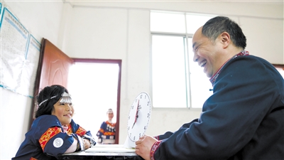 2月8日,鄧煙發與他的兩名學生在國歌聲中開啟了新學期的第一天。江西省全南縣瑤族雙語小學所在的陂頭鎮瑤山村,背靠蒼茫大山,53歲的鄧煙發是學校目前唯一的教師。三尺講臺,29年光陰,鄧煙發見證著無數瑤族孩子從這里邁向遠方。自1994年鄧煙發從業以來,城鎮化進程不斷加快,越來越多的老師和學生選擇去外地任教或上學,學校從最多時30人到如今只剩他和2名學生。“日子過了很久,大山沒變,綠水沒變,我的心亦沒變。”鄧煙發說。