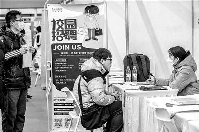 2月16日,學(xué)生在西安建筑科技大學(xué)2023屆畢業(yè)生春季就業(yè)洽談會(huì)上尋找合適的崗位。