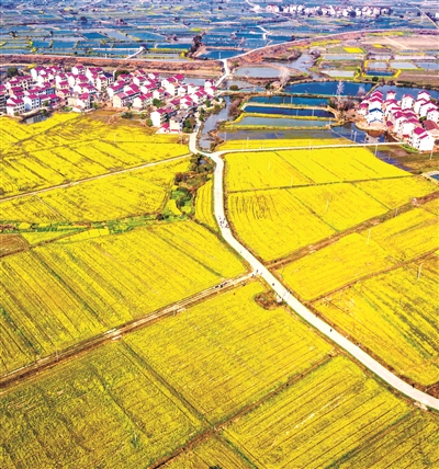 2月21日,一群學生在江西省樟樹市永泰鎮官湖村油菜花海中寫生。隨著天氣回暖,當地油菜花競相綻放,吸引了眾多學生前來觀賞、寫生。 新華社發(周亮 攝)