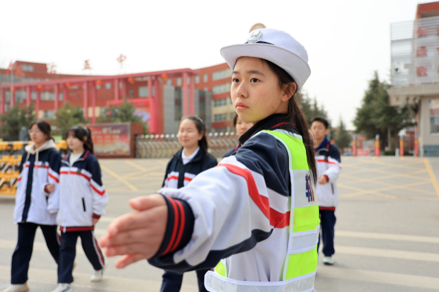 近日,山西省長治市公安局交警支隊二大隊深入長治五中,為學生們送去了一堂生動有趣的交通安全宣傳教育課?;顒又?,學生們學習了交通指揮手勢,化身“小交警”站好“護學崗”,將交通安全知識牢記心間。王健 攝