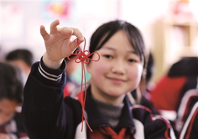 4月7日,河北省邢臺市廣宗縣西關(guān)小學(xué)的勞動課堂上,學(xué)生在展示編好的中國結(jié)。近年來,廣宗縣積極推進中小學(xué)勞動實踐教育課程常態(tài)化,開設(shè)多樣化勞動實踐課程,提升學(xué)生的勞動實踐能力,讓學(xué)生體驗勞動快樂。王壘 攝
