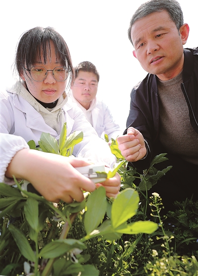 “您家去年播種較晚,苗情偏弱,現(xiàn)在正是小麥拔節(jié)長高的時候,要趕緊追肥。”眼下正是春耕備耕的關鍵時間,在江蘇省張家港市錦豐鎮(zhèn)店岸村,揚州大學農學院首屆“張家港班”畢業(yè)生蘇宏鼎在田間地頭向農戶“傳經(jīng)送寶”。