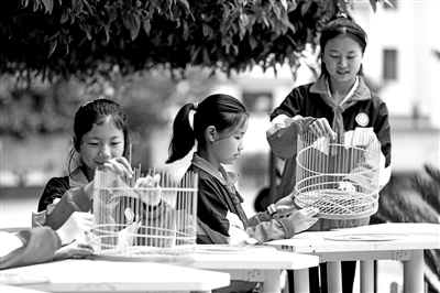 4月18日,貴州省黔西市甘棠鎮(zhèn)甘棠小學(xué)的學(xué)生在體驗(yàn)傳統(tǒng)鳥籠的制作。近年來,甘棠小學(xué)開展“傳統(tǒng)鳥籠文化進(jìn)校園”主題活動(dòng),遴選精通鳥籠制作的教師為學(xué)生們講解和演示鳥籠制作,讓他們近距離感受傳統(tǒng)文化。