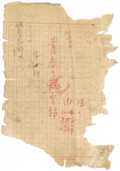 《青春之歌》的手稿是女作家楊沫上世紀90年代捐贈給中國現代文學館的。該作品是新中國成立后,我國第一部反映小資產階級知識女性成長與蛻變的革命文學作品。1950年,楊沫開始構思創作這部帶有半自傳性質的長篇小說。那一年,36歲的楊沫在文化部電影局劇本創作所任職,那時的她頻繁因病休養。在病痛與孤寂中,抗戰時期的記憶經常走入楊沫的腦海。在當時的日記中,楊沫曾寫下這些文字: