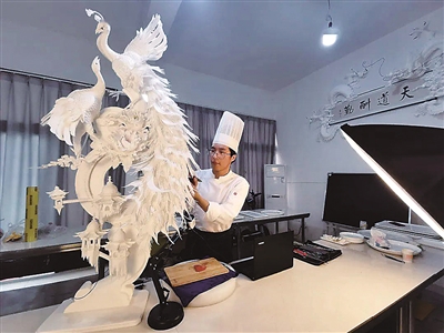 “生命力”是鄭云海在談及食品雕刻時反復提到的一個詞。在食品雕刻上,鄭云海也曾經歷過挫折。“那會兒就是感覺做出來的東西都是沒有那種‘生命力’,很呆板。”所幸鄭云海在那段時間仍堅持練習,并四處拜訪大師學藝,在某一刻突然沖破了瓶頸期。
