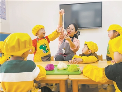 為提升服務質量,實現從“教養一體”向“科學照護”轉變,亭湖區還出臺了《0—3歲嬰幼兒教養方案》,以“五感能力”培養、“群體意識”提升和“健康人格”塑造為目標,建立了五感生活化、游戲課程化、食育定制化、照護科學化、成長群體化的全過程托育服務課程體系。該區學前教育中心主任吳笑紅介紹,每所托育園圍繞方案制定自主性課程,以“保育、養育、教育”三結合為原則,精心設計“一日常規照護服務流程”,做到生活教育化、教育生活化。