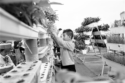 烏鎮植材小學地處世界互聯網小鎮,在市教育局與科協的支持和協助下,開辟了基于互聯網技術和現代農業種植管理技術的“現代智慧農業科學工作室”。工作室占地約500平方米,極具現代科技感的連棟大棚里,種植區、水培區、育苗區、授課區一應俱全,溫室環境控制系統、水肥一體化系統都裝上了“智慧大腦”,還有無土栽培、魚菜共生等多種現代農業種植模式。