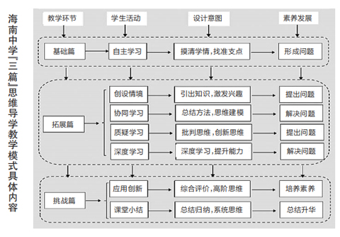 2020年7月,為推動實施普通高中新課程新教材國家級示范校建設,海南中學以思維導學理論為指導,按照“目標導航、路徑導引、問題導向”的思路進行全新教學設計,促進教師深度備課研課,引導學生深度學習,探索出一條有利于培養學生核心素養、提高學生思維力和學習力的“高效低負”的高中教學改革之路。